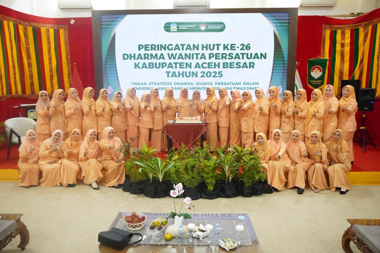 Sementara itu, Ketua DWP Kabupaten Aceh Besar, Nurbaiti Bahrul Jamil, menyampaikan bahwa peringatan HUT ke-26 DWP menjadi momentum refleksi dan penguatan peran perempuan dalam pembangunan bangsa.