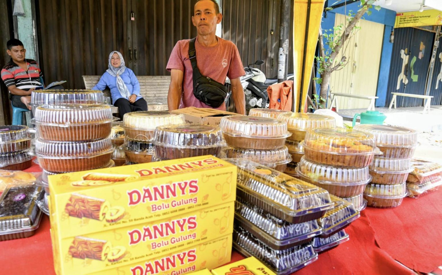 Di tengah ramainya masyarakat yang berbelanja kebutuhan lebaran, Hasan tampak sibuk melayani pembeli yang datang silih berganti. Ia menjual berbagai jenis kue bolu dengan harga yang bervariasi, mulai dari Rp30.000 hingga Rp70.000 per kotak.