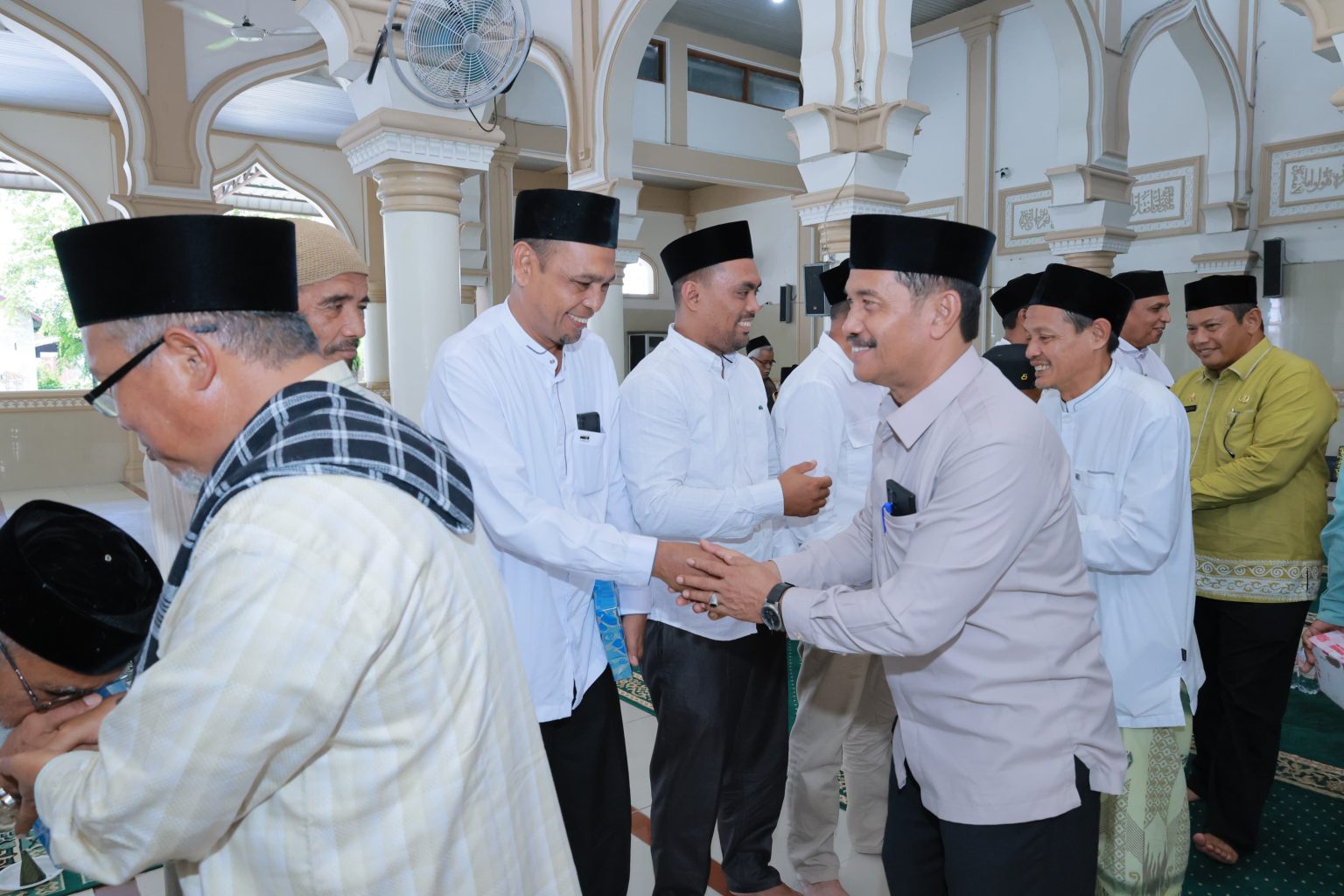 Kabarnanggroe.com, Kota Jantho – Sebanyak 28 Jamaah Calon Haji (JCH) tahun 2026, yang berasal dari Lingkup Dinas Pendidikan dan Kebudayaan Kabupaten Aceh Besar dilakukan prosesi adat Peusijuek (tepung tawar-red) oleh Wakil Bupati Aceh Besar Drs Syukri A Jalil, di Masjid Baitul Makmur, Sibreh, Kecamatan Sukamakmur, Kamis (23/4/2026).