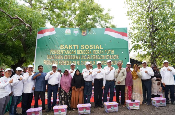 Usai Pembentangan Bendera Merah Putih, Forkopimda dan Pangdam IM memberikan 100 paket sembako kepada warga Lamreh.