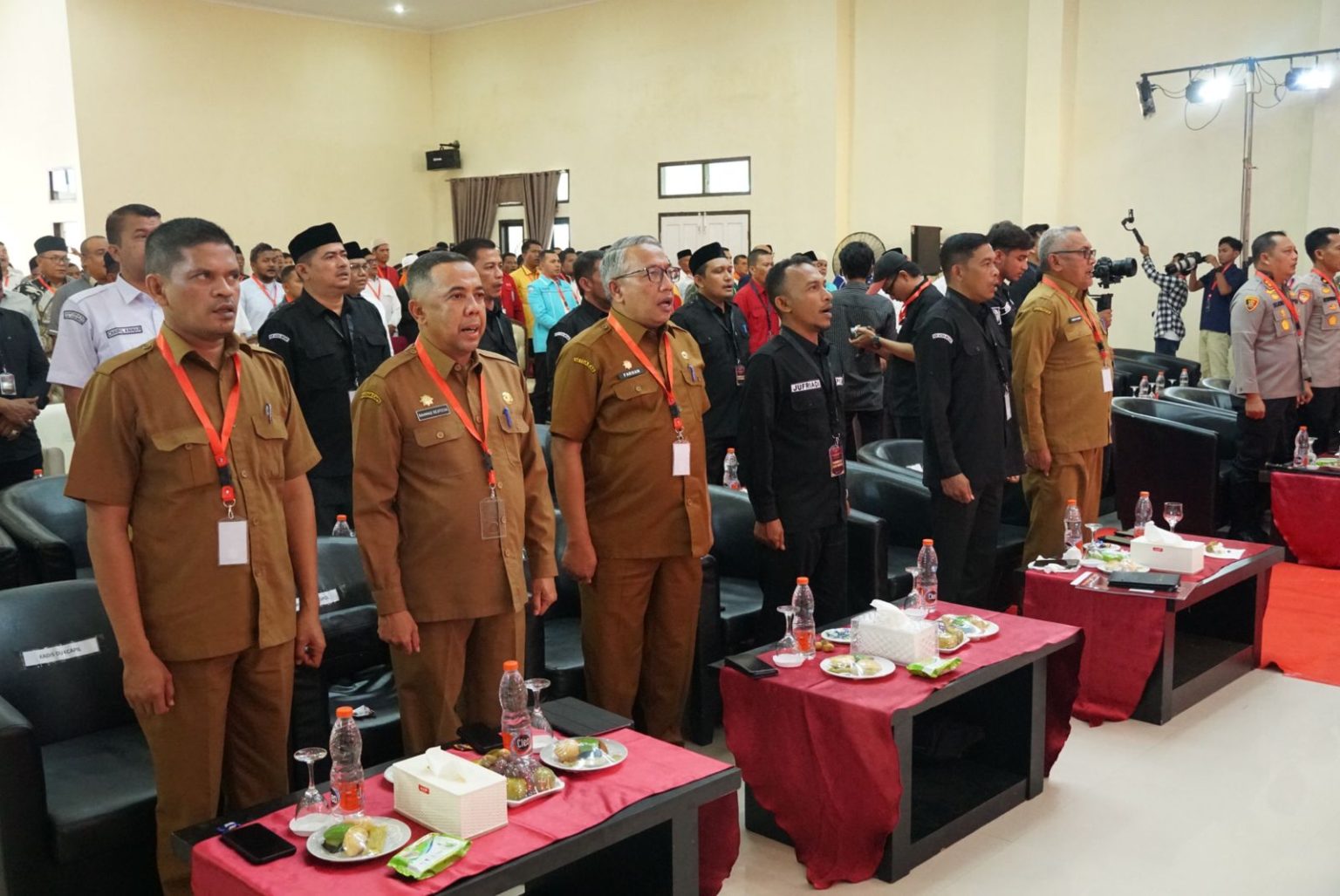 Asisten I Sekdakab bersama Kesbangpol dan Kadis Disdukcapil menghadiri penetapan nomor urut pasangan calon (paslon) Bupati dan Wakil Bupati Aceh Besar untuk periode 2024-2029, bertempat di Gedung SKB Kota Jantho, Senin (23/09/2024). FOTO/ ZUL FAZLI