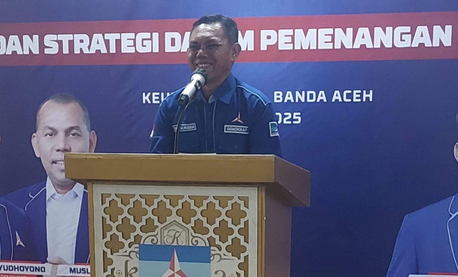 Dia juga menyebut satu persatu peserta yang hadir, terutama petinggi DPC Partai Demokrat Banda Aceh dan DPD Partai Demokrat Aceh.