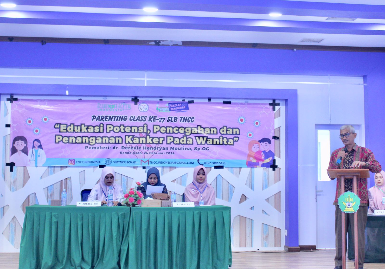 Kabarnanggroe.com, Banda Aceh — Sekolah Luar Biasa The Nanny Children Center (SLB TNCC) Banda Aceh menyelenggarakan Parenting Class yang ke-27 dengan fokus pada edukasi kanker khusus untuk wanita di Aula Fakultas Psikologi UIN Ar-Raniry, Kopelma Darussalam, Banda Aceh, Sabtu, (24/2/2024).