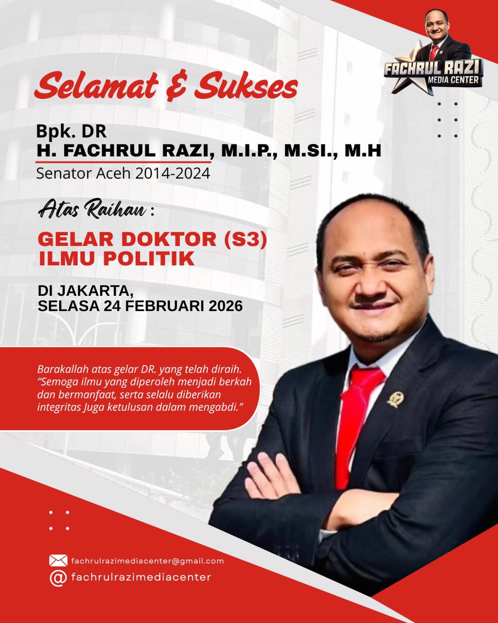 Kabarnanggroe.com, Jakarta – Tokoh Aceh yang juga mantan Juru Bicara Partai Aceh dan eks anggota Dewan Perwakilan Daerah Republik Indonesia periode 2014–2024, Fachrul Razi, resmi meraih gelar Doktor (S3) dalam bidang Ilmu Politik, di Jakarta, Selasa (24/2/2026).