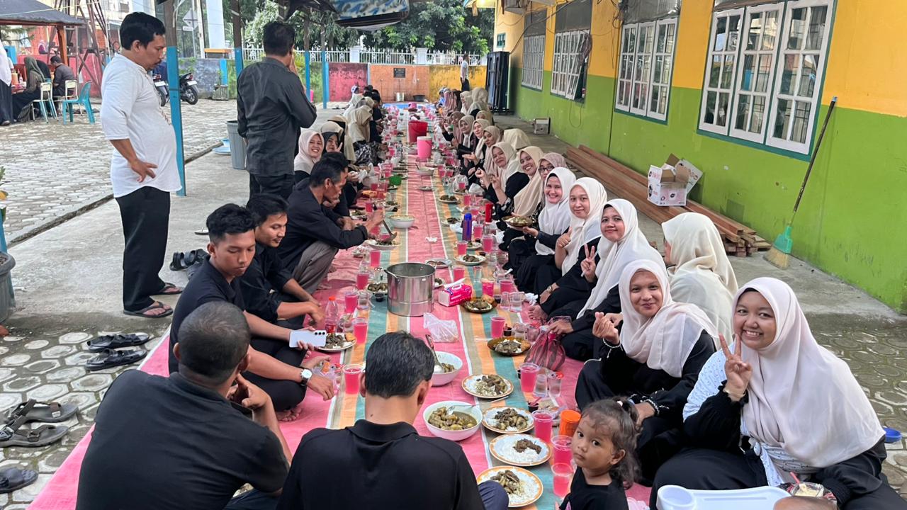 Suasana haru dan kebersamaan begitu terasa saat seluruh tamu undangan, guru, siswa, serta anak-anak yatim duduk bersama menikmati hidangan berbuka puasa dan takjil yang telah dipersiapkan di halaman madrasah. Menu andalan yang disajikan adalah Kuah Beulangong khas Aceh Rayeuk yang semakin menambah kehangatan suasana kebersamaan.