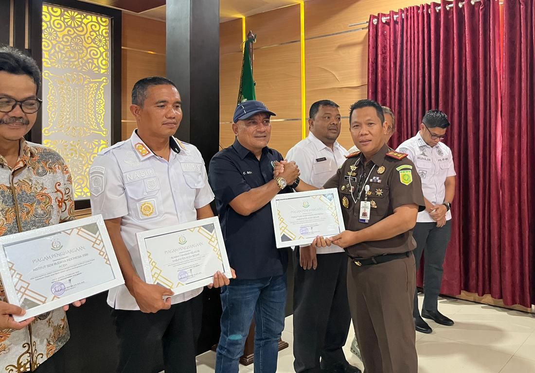 Penyerahan penghargaan tersebut oleh Kepala Kejari Aceh Besar, Jemmy Novian Tirayudi SH MH MSi kepada Ketua PWI Aceh Besar diwakili Ketua Bidang SIWO PWI Aceh Besar, Muzakkir RA yang akrab disapa Cek Boy, dalam kegiatan pemberian reward kepada sembilan instansi mitra, di Aula Baharuddin Lopa, Kejari Aceh Besar, Kota Jantho, Rabu (25/2/2026).