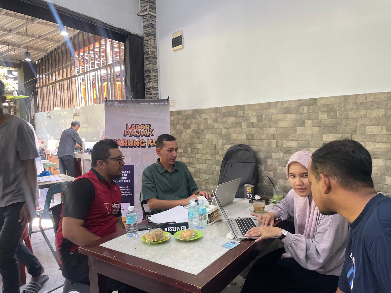 Sementara itu, untuk pelaksanaan di lapangan, KPP Pratama Banda Aceh menugaskan sejumlah petugas pajak di tiap lokasi. Di Solong Coffee Pango misalnya, kegiatan dikoordinir oleh Asrul Hadi bersama Rifani Maulida.