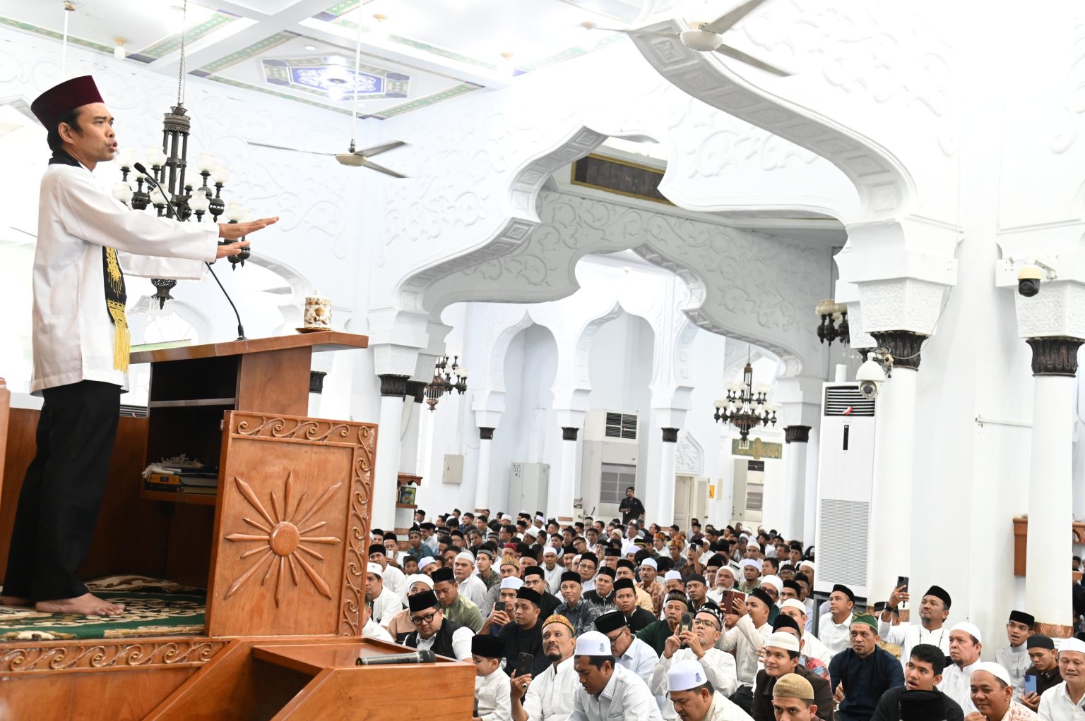 Pada kesempatan tersebut, UAS turut menyerahkan bantuan kemanusiaan berupa 1 Ton daging rendang, 10 ton beras, 1 mobil colt diesel pakaian layak pakai, mushaf Al-Qur’an, buku Iqra, hingga berencana merenovasi mesjid-mesjid yang terdampak bencana yang bersumber dari Yayasan Tabung Wakaf Umat untuk Aceh. Bantuan tersebut nantinya akan disalurkan langsung kepada masyarakat terdampak banjir di Provinsi Aceh.(Adv)
