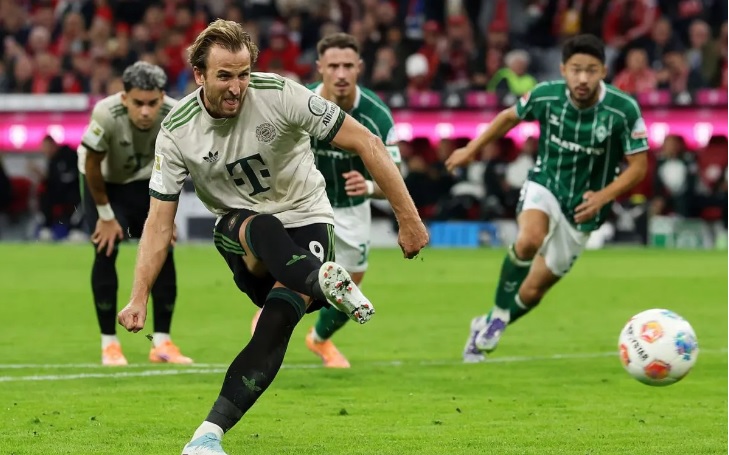 Bayern kemudian menggandakan keunggulan di penghujung babak pertama. Kane dijatuhkan di kotak terlarang oleh Marco Friedl dan berhasil mengeksekusi penalti dengan tenang pada menit ke-45.