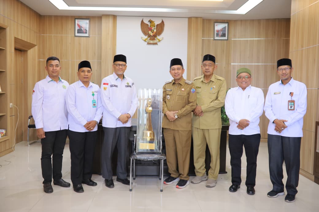 Kabarnanggroe.com, Pidie Jaya – Kepala Kantor Kementerian Agama (Kakankemenag) Kota Banda Aceh, H. Salman Arifin, S.Ag., M.A., menyerahkan piala bergilir Musabaqah Tilawatil Qur’an (MTQ) tingkat Provinsi Aceh kepada Bupati Pidie Jaya, Tgk. Sibral Malasyi, di ruang kerja Bupati Pidie Jaya, Senin (27/10/2025).