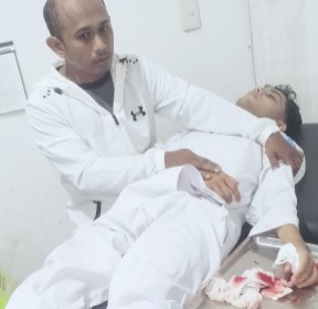 3. Dafa (Banda Aceh) cedera tangan, robek ibu jari.