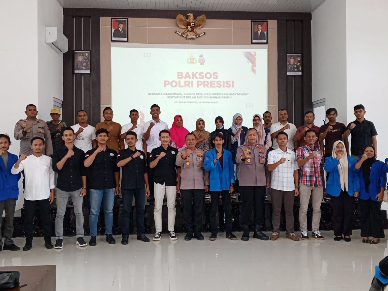 Kabarnanggroe.com, Kota Jantho – Pengurus Pusat Himpunan Mahasiswa Aceh Besar (PP-HIMAB) turut serta menyukseskan Bakti Sosial (Baksos) Polri Presisi yang digelar pihak Polres Aceh Besar bersama organisasi kemasyarakatan pemuda (OKP), Aliansi BEM, Insan Pers dan Masyarakat, di Aula Satya H Prabu Polres Aceh Besar, Kamis (27/10/2022) dalam rangka menyambut bulan suci Ramadhan 1446 H.