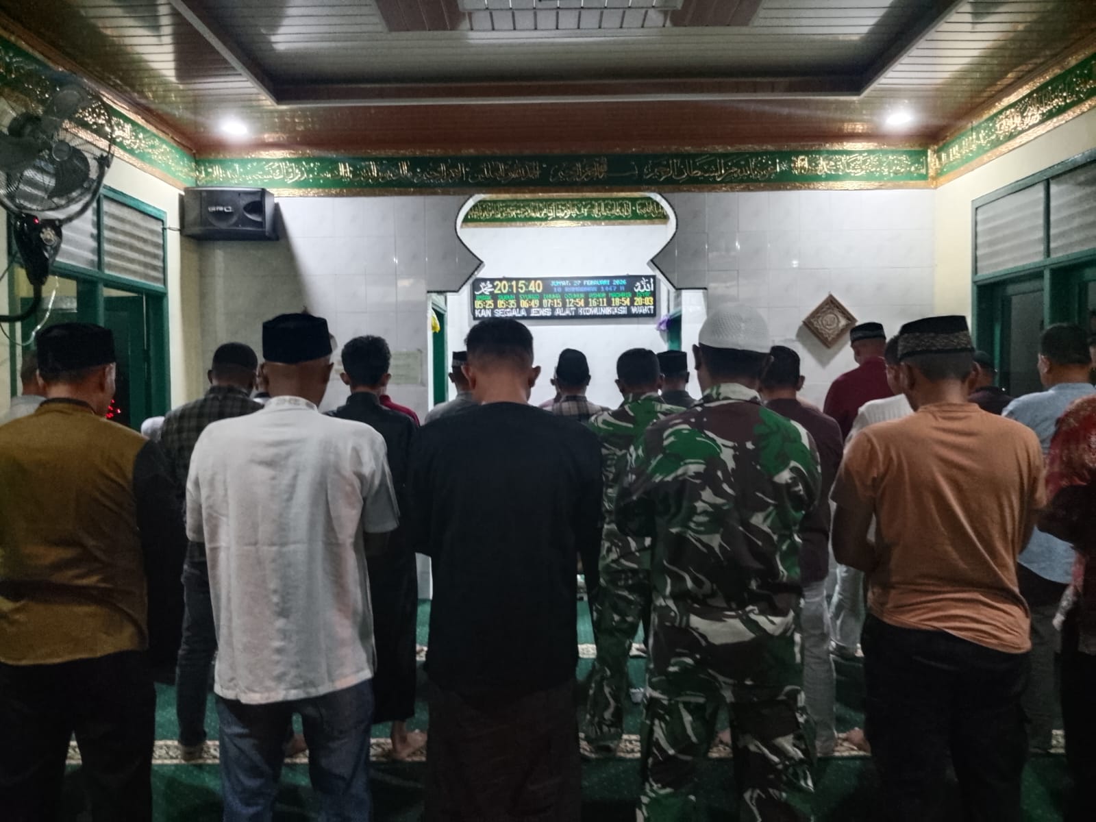 Ibadah dipimpin oleh Serda Hazami yang sehari-hari bertugas sebagai Babinsa di wilayah Lhoknga. Dengan lantunan ayat suci Al-Qur’an yang tertata rapi dan penuh penghayatan, suasana ibadah berlangsung tertib, tenang, serta menghadirkan nuansa kebersamaan yang kuat di tengah bulan suci.