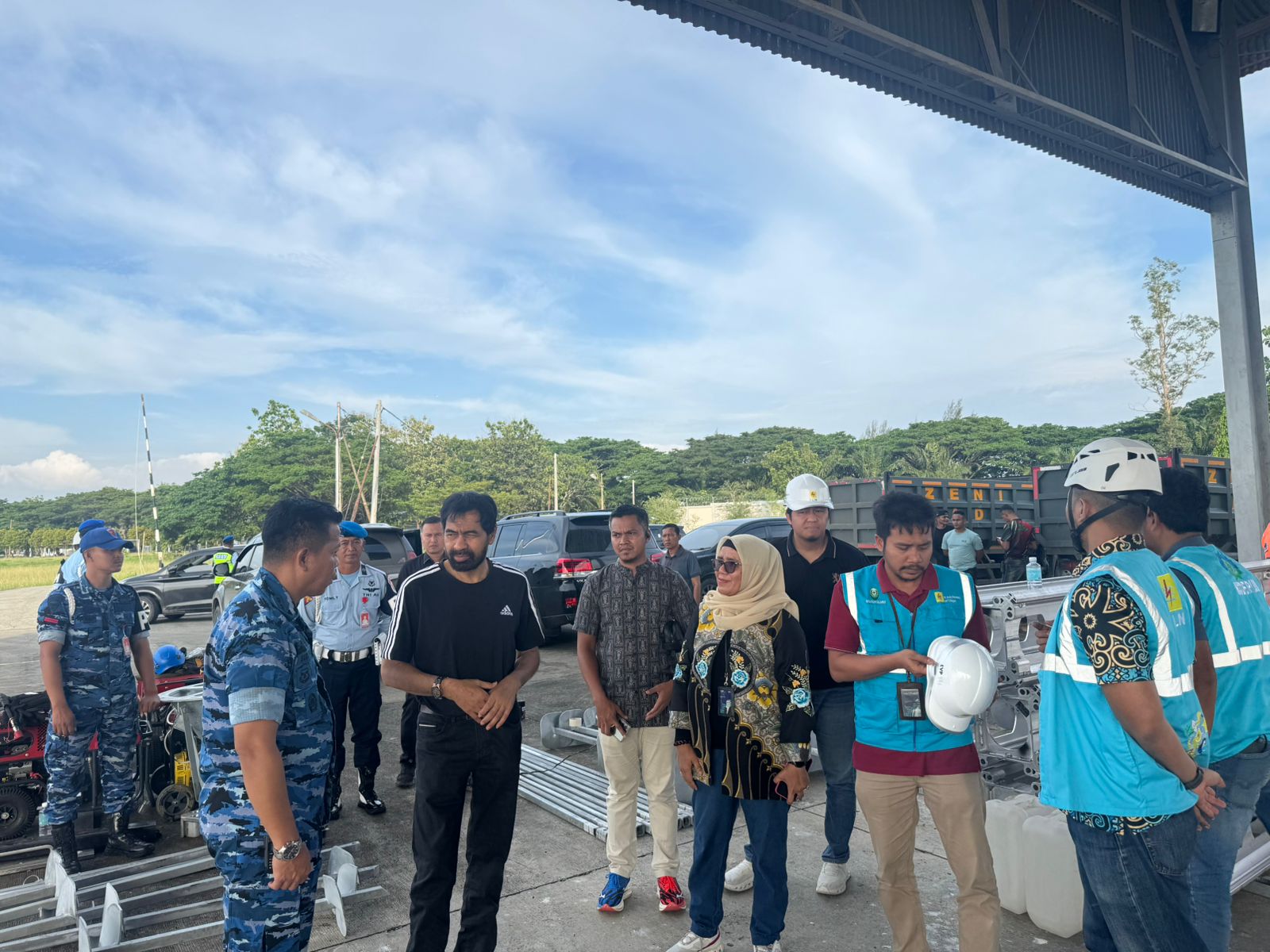 kabarnanggroe.com Banda Aceh – Gubernur Aceh Muzakir Manaf atau Mualem meninjau langsung material tower pengganti untuk percepatan pemulihan kelistrikan Aceh yang tiba dari Jakarta menggunakan pesawat Hercules di Landasan Udara Sultan Iskandar Muda (Lanud SIM), Blang Bintang, Aceh Besar, Jumat (28/11/2025).
