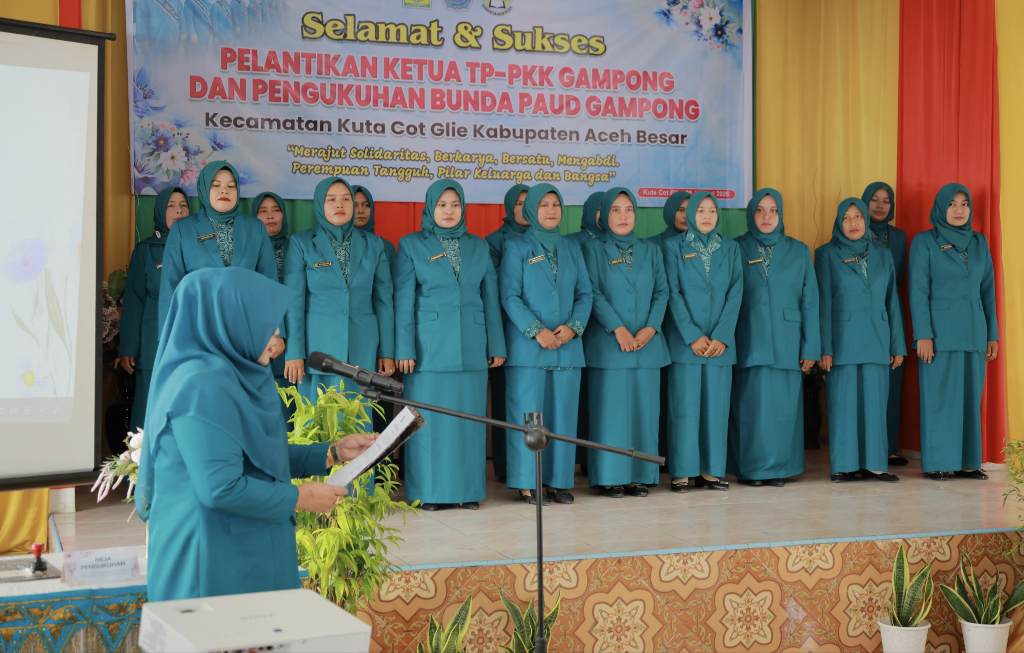 Pelantikan tersebut turut dihadiri Wakil Ketua II TP PKK Aceh Besar, Nurbaiti, jajaran TP PKK Kabupaten Aceh Besar, serta para keuchik se-Kecamatan Kuta Cot Glie.(Wahyu)