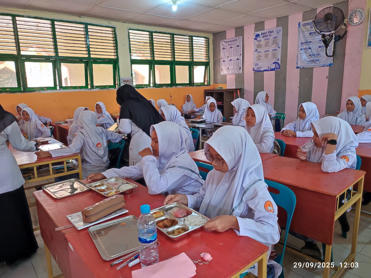 Program MBG tersebut menjadi langkah awal dalam mendukung kesehatan dan kesejahteraan warga madrasah. Sejak pagi, siswa-siswi telah menanti kegiatan ini dengan penuh antusias, sementara para guru turut mendampingi jalannya pembagian makanan.