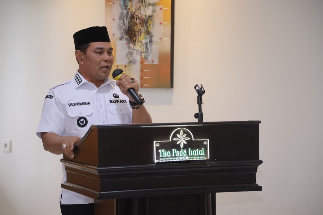 Dalam sambutannya, Bupati Muharram Idris menyampaikan bahwa kegiatan ini menjadi momentum penting dalam mempertegas komitmen Pemerintah Kabupaten Aceh Besar terhadap pengakuan dan perlindungan hak-hak masyarakat adat.
