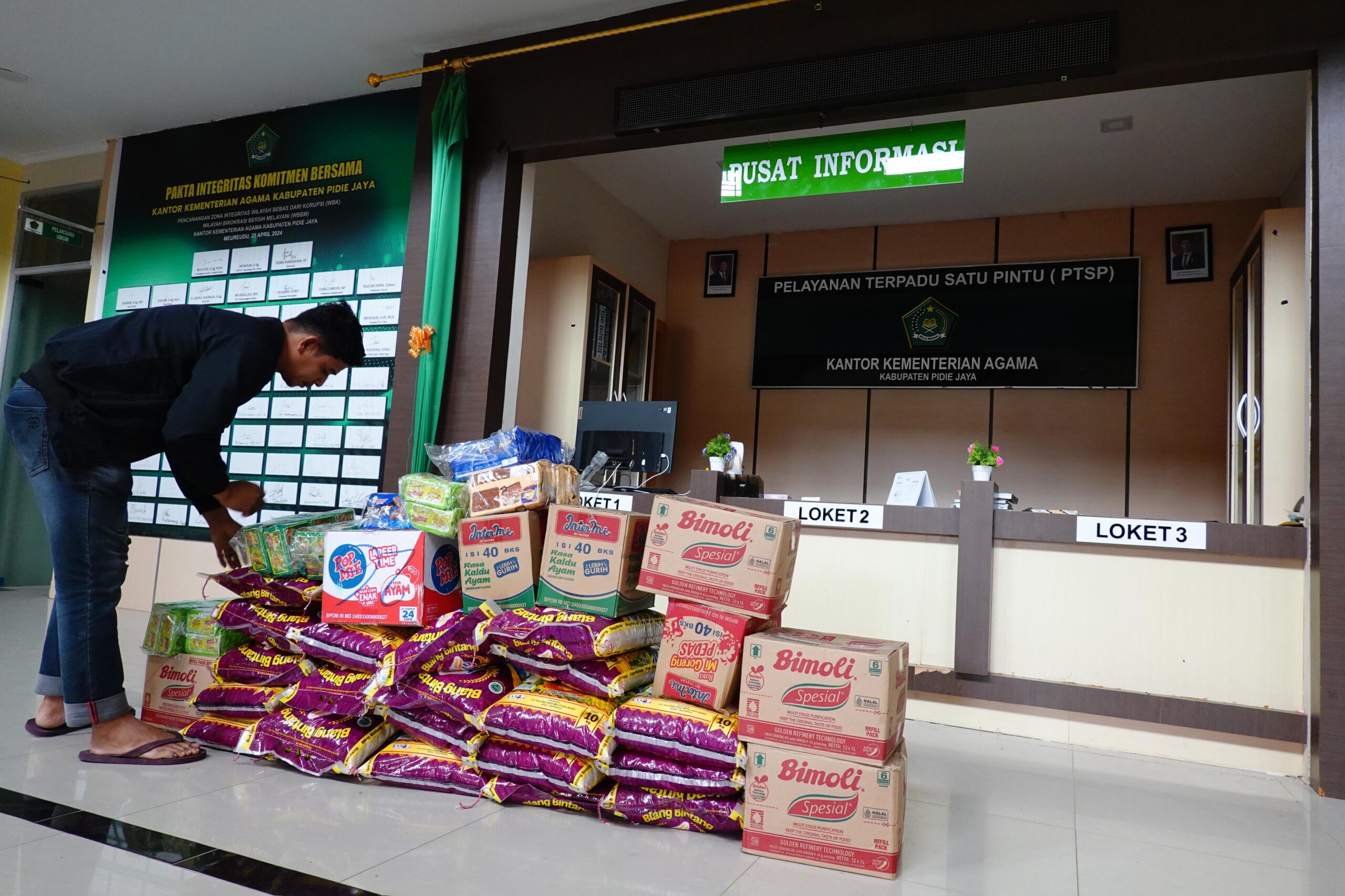 Pada kesempatan tersebut, Kanwil Kemenag Aceh turut menyalurkan bantuan tanggap darurat berupa sembako kepada keluarga besar Kemenag yang terdampak di Pidie Jaya dan Pidie.