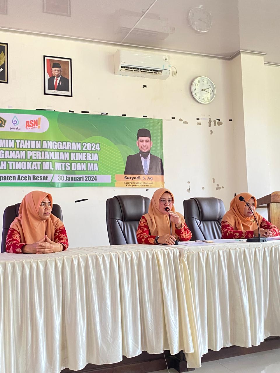 Kabarnanggroe.com, Kota Jantho – Darma Wanita Persatuan (DWP) Kementrian Agama kabupaten Aceh Besar menggelar pertemuan bulanan pada Selasa, 30 Januari 2024, di aula PLHUT Kemenag Kota Jantho. Rapat bulanan tersebut dipimpin langsung oleh Ibu Yasmaidar, selaku Ketua DWP, didampingi oleh Elli Nurfitrianti, SE sebagai Sekretaris, dan Zahrina sebagai Bendahara. Turut hadir pula Wakil Ketua Ibu Nelli Khalid Wardana.