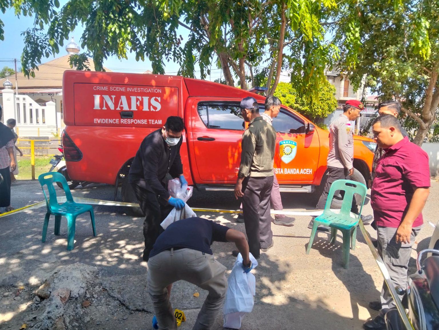 Berdasarkan penemuan tersebut, petugas kebersihan menghubungi perangkat Gampong Punge Jurong untuk melaporkan kejadian. Selanjutnya, perangkat gampong meneruskan laporan tersebut kepada pihak Polsek Meuraxa, sambung AKP Yudha.