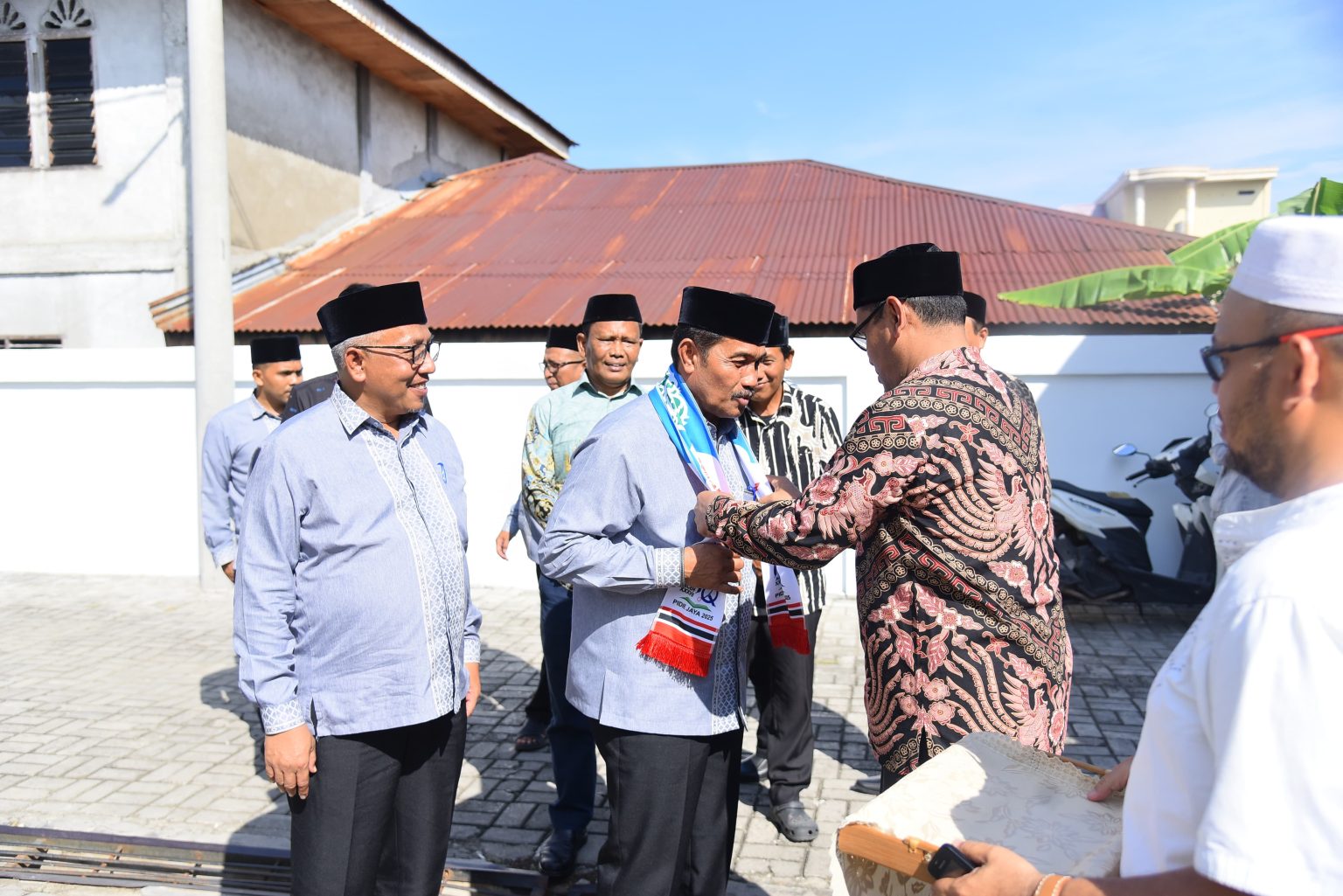 Wakil Bupati Aceh Besar Drs H Syukri A Jalil, bersama Ketua Kafilah Farhan AP, serta rombongan, disambut di Pendopo Bupati Pidie Jaya, Kamis (30/10/2025). FOTO/ WAHYU