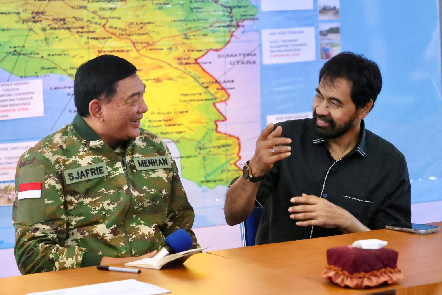 Menhan juga menanyakan kesiapan pemerintah Aceh untuk penanganan bencana dan apakah diperlukan status bencana dinaikkan menjadi darurat nasional. Gbernur Mualem menjawab bahwa skala kerusakan sudah sangat luas. Untuk tahap awal, ia bersama Forkopimda Aceh telah menetapkan status darurat provinsi. “Tapi melihat kondisi di tiga provinsi dan skala bencana ini, mungkin bisa menjadi darurat nasional,” ujar Mualem Gubernur.