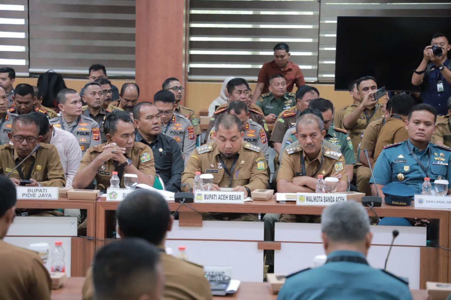 Rakor yang dipimpin langsung oleh Pj Gubernur Aceh, Bustami Hamzah SE MSi, diikuti Kapolda Aceh, Pangdam IM, KIP Aceh, Plh Dirjen Keuangan Daerah, Kemendagri, Kabinda, para Danrem, Danlanud, Bupati/Walikota, ketua DPRK, Kapolres, Dandim, Kajari dan Sekda se-Provinsi Aceh.