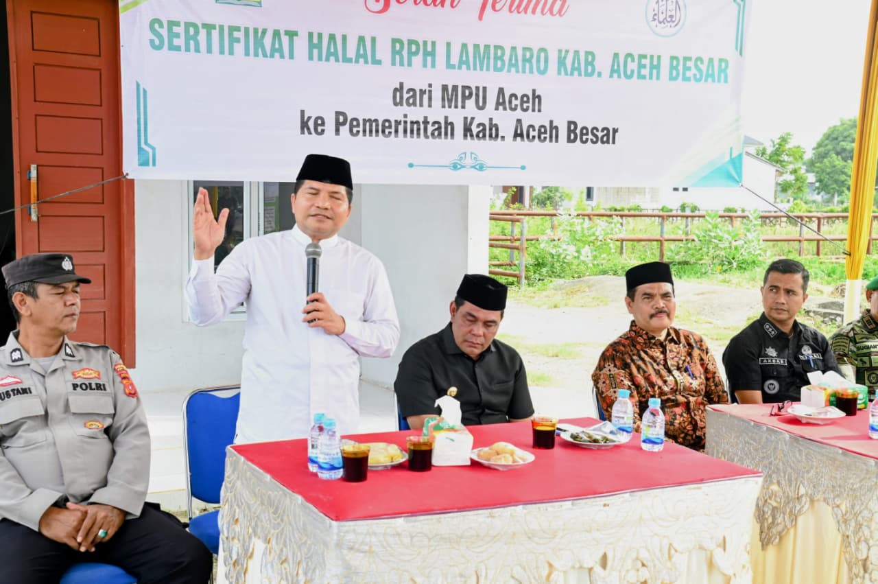 Sementara itu, Ketua MPU Aceh, Tgk. Faisal Ali, menyampaikan apresiasi kepada Pemerintah Kabupaten Aceh Besar atas dukungan dan kolaborasi dalam mewujudkan fasilitas pemotongan hewan bersertifikat halal di daerah tersebut.