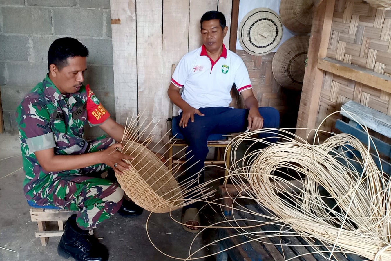 Dorong UMKM Lokal, Babinsa Lamgaboh Lhoknga Ikut Produksi Anyaman Rotan Bersama Warga