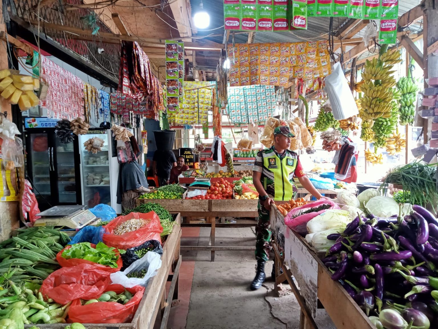 Sersan Irwandi Babinsa Posramil Darussalam Monitoring Harga Sembako di Pasar Tradisional