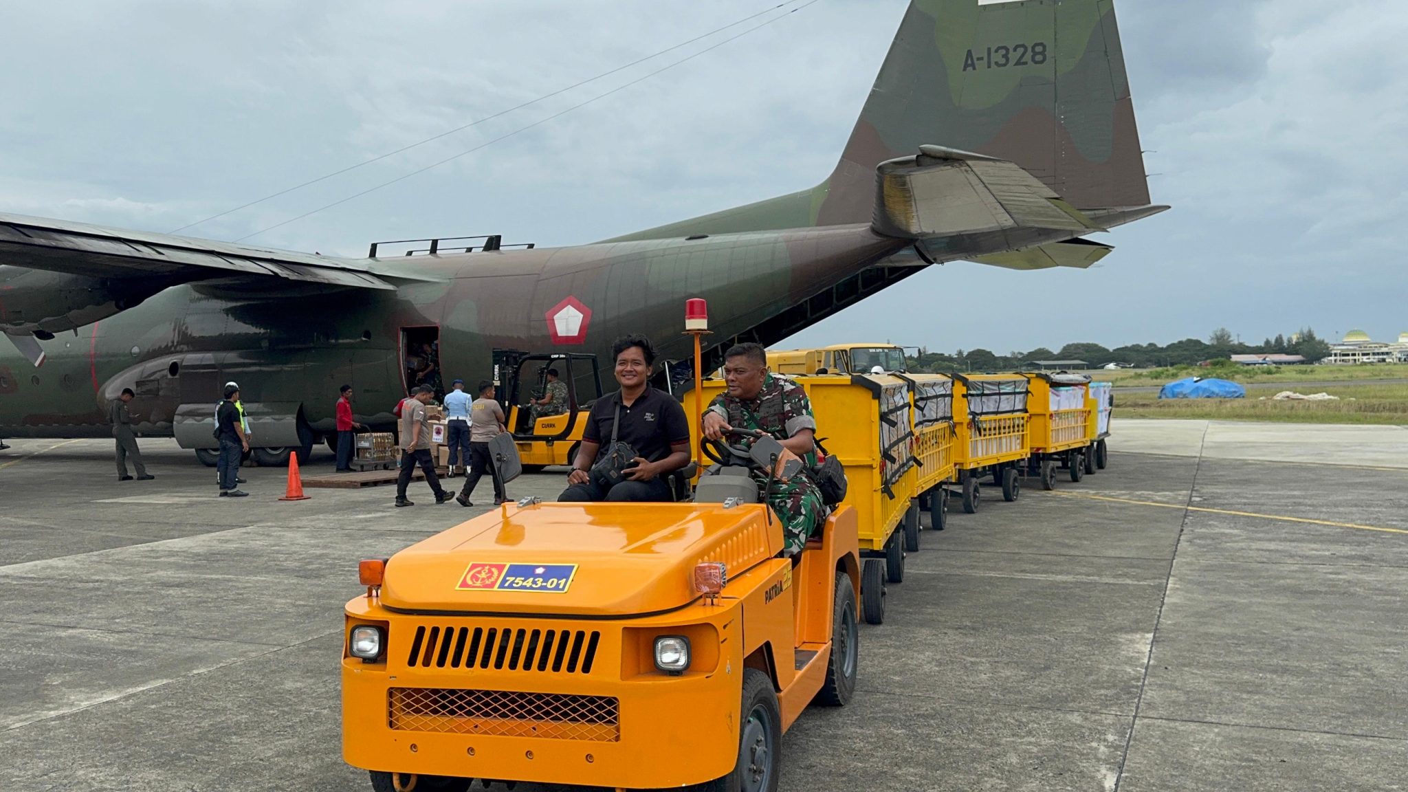 Hercules C-130 TNI AU Turunkan 17 Ton Bantuan Kemanusiaan di Lanud SIM Aceh