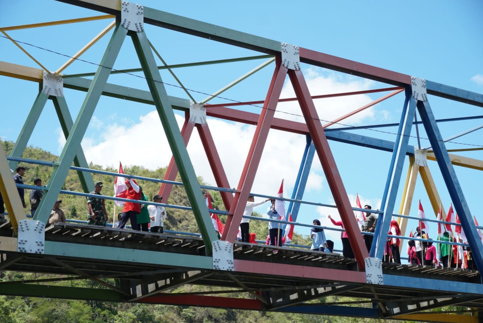 Di Jembatan Jalin, Organisasi Wanita Forkopimda Aceh Besar Kibarkan Merah Putih